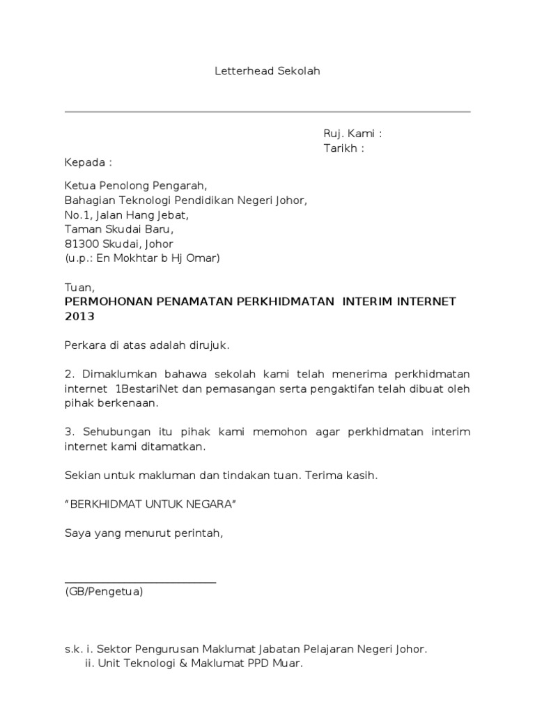 Contoh Surat Penamatan Internet Sekolah1 Pdf