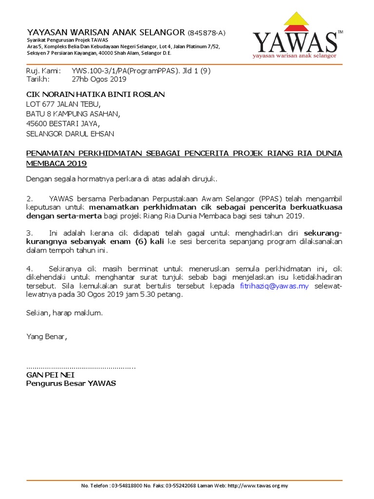 Pemberhentian Contoh Surat Penamatan Perkhidmatan Oleh Majikan Otosection
